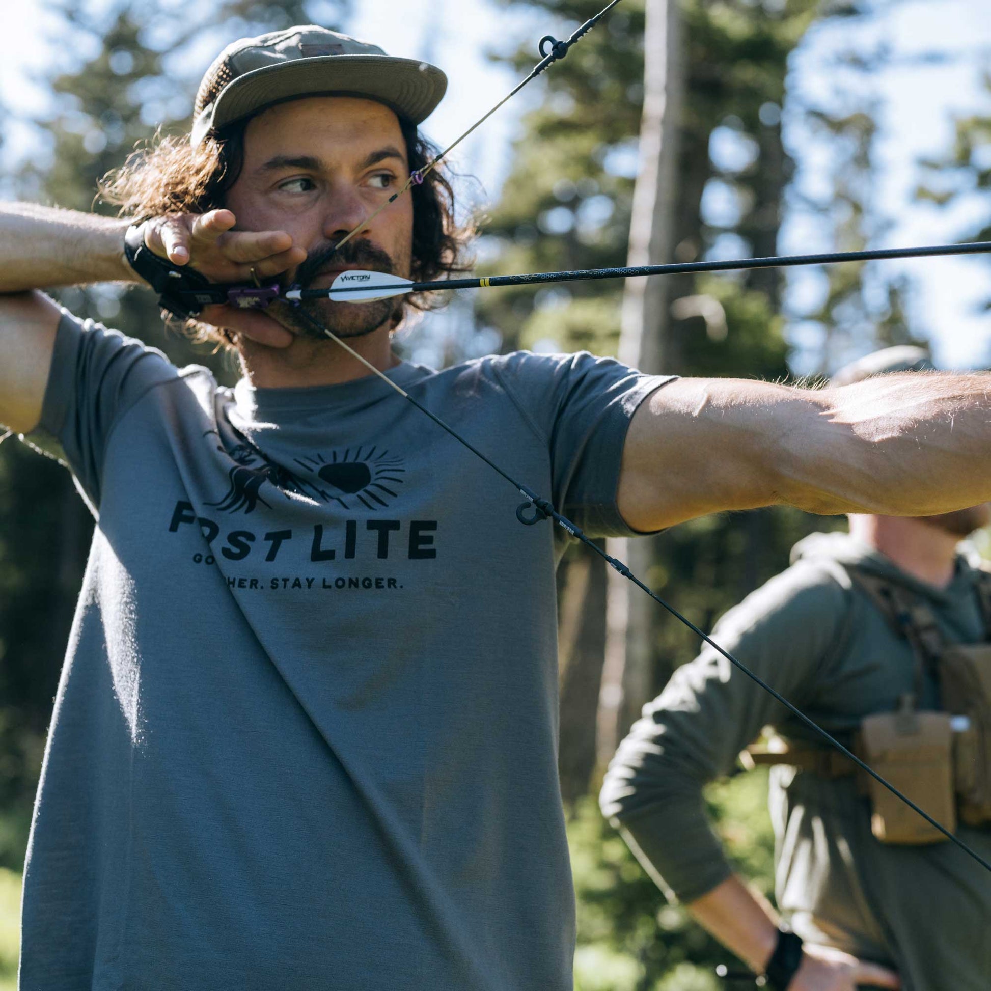 Whether you're scouting summer mule deer in the high country, flinging arrows at foam in the backyard, or searching for the season's last sheds, the Aerowool® Tech Tee will keep you cool while you're representing the best brand in the biz. Just like our best-selling Wick Short Sleeve Crew, the airy 150-gram Aerowool® construction features 37.5 active particle technology and will dry rapidly without compromising durability or odor resistance.