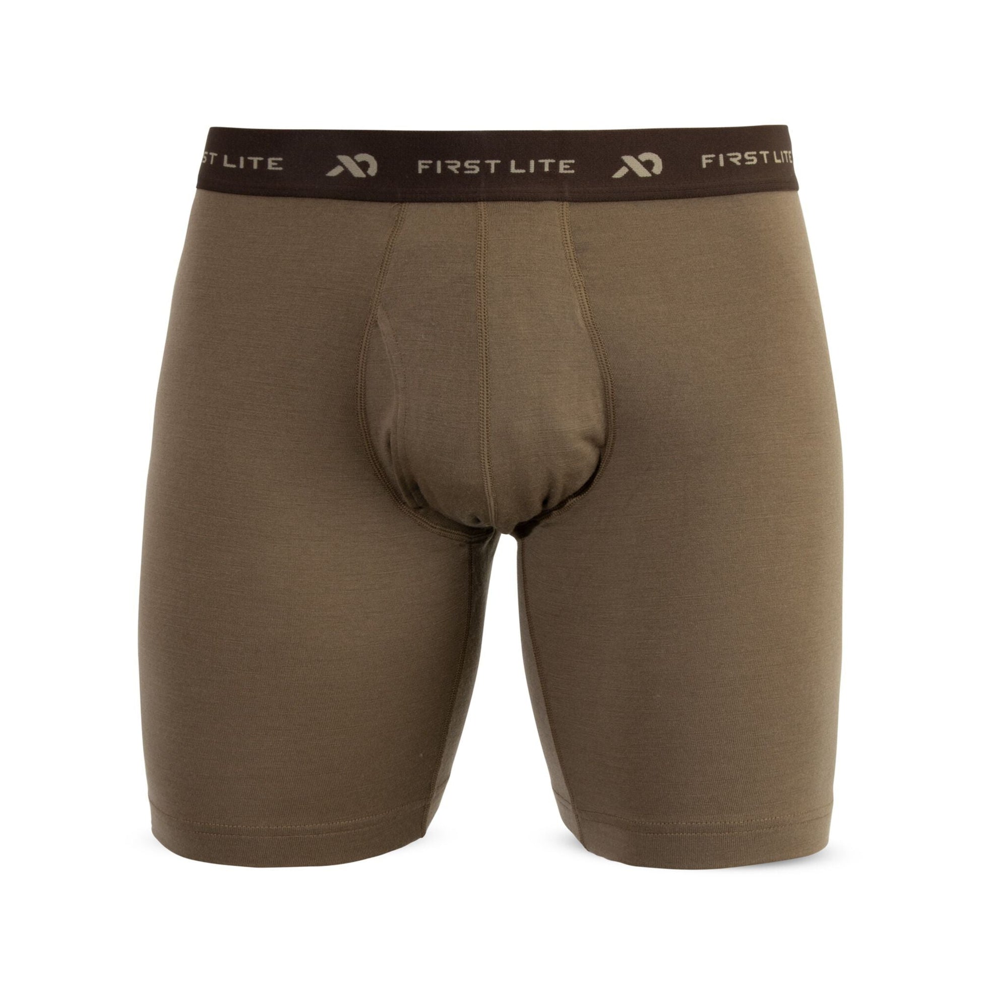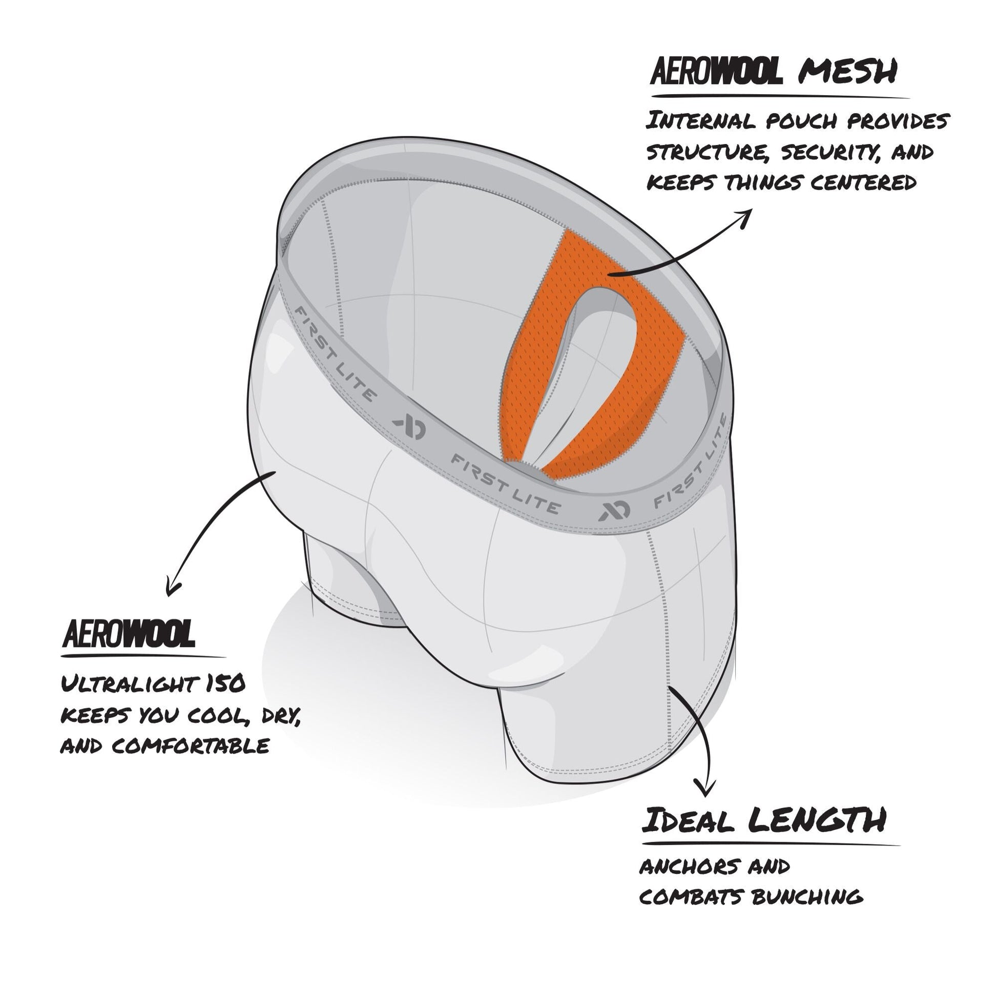 Every outdoorsman knows that proper meat care is a priority. First Lite has taken our tried and true Aerowool® Wick 150 Merino fabric and created a biometrically supportive boxer brief that ensures your most precious perishables are cared for through any level of exertion. An internal divider pouch keeps you supported and dry, while the 37.5 Active Particles in the merino blend actively transport moisture out of the garment. Finally, a generous mid-length cut holds the garment in place without feeling restrictively short or unnecessarily long. No matter what season or what the pursuit, with the Game Bag Boxer Brief, you can rest assured that everything is appropriately supported, stored, and cared for.