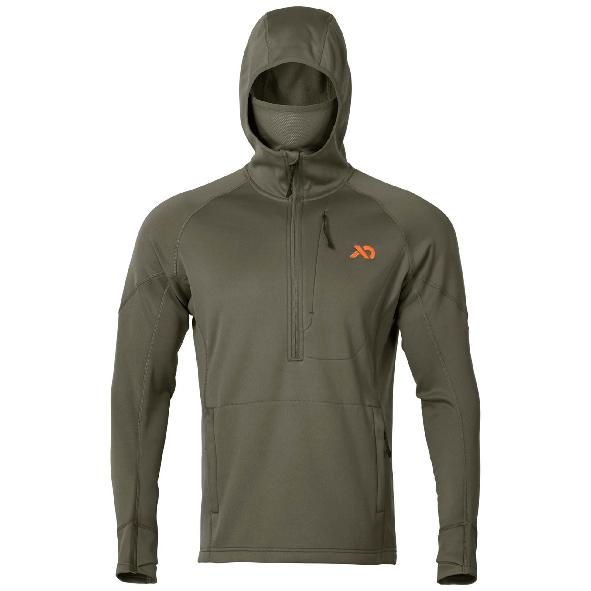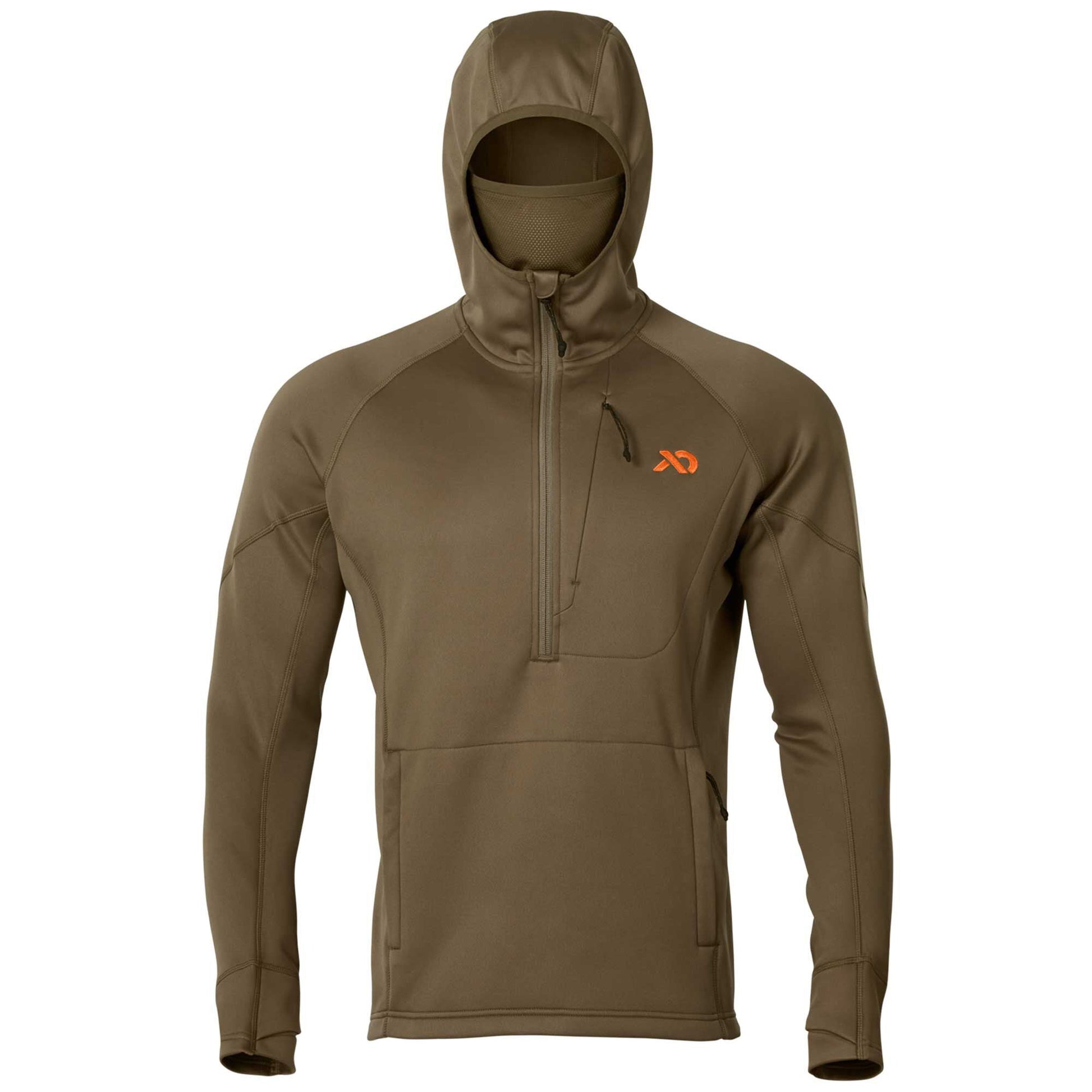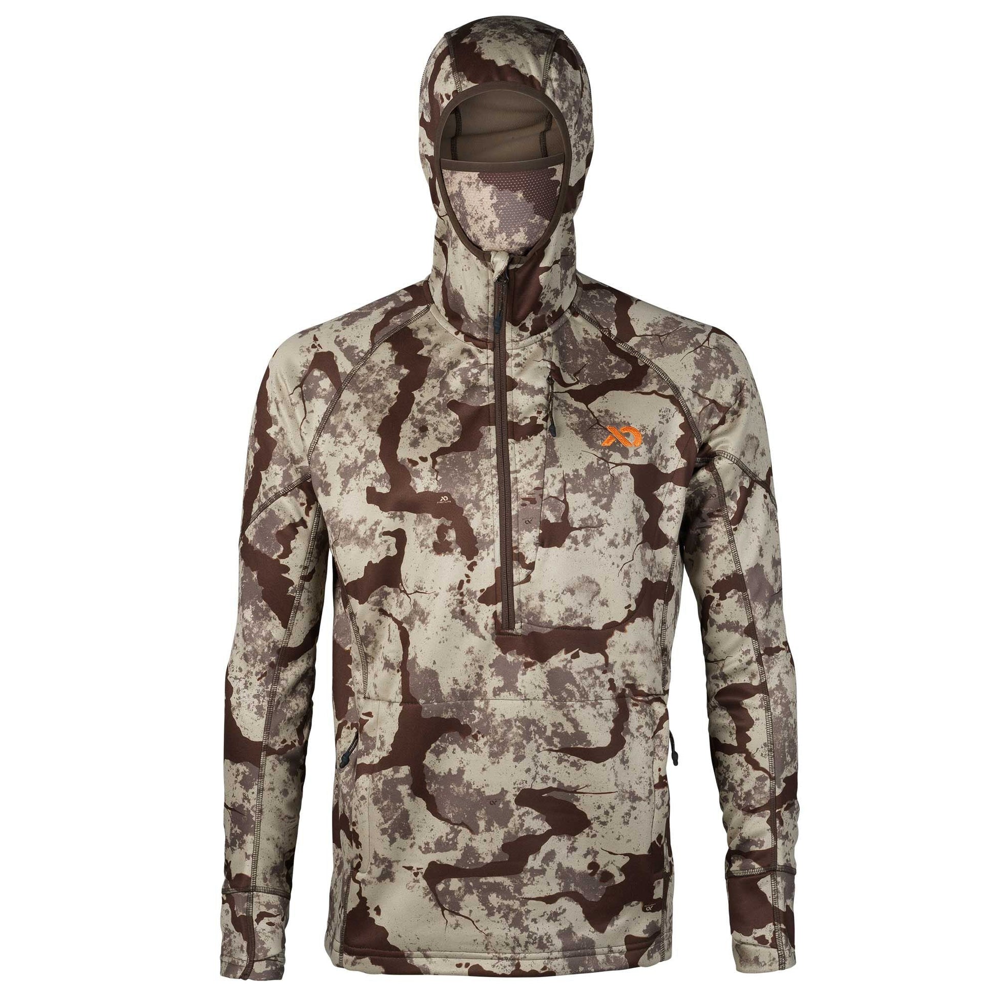 A lightweight, quiet mid-layer designed to be utilized as both an outerwear piece and a layering option as temperatures drop. Designed for the treestand, the blind, and the mountainside, the Origin Hoody's Shooter's Cut allows for a full range of motion when drawing a bow or shouldering a rifle, making it better fitting than its predecessor, the Klamath Hoody. The Origin Hoody is feature-rich with discreetly integrated facemask and cuff thumb loops that are easily tucked away when not in use. The piece also features a large chest and kangaroo pocket, complete with premium, rubber-dipped zip closures for secure storage.