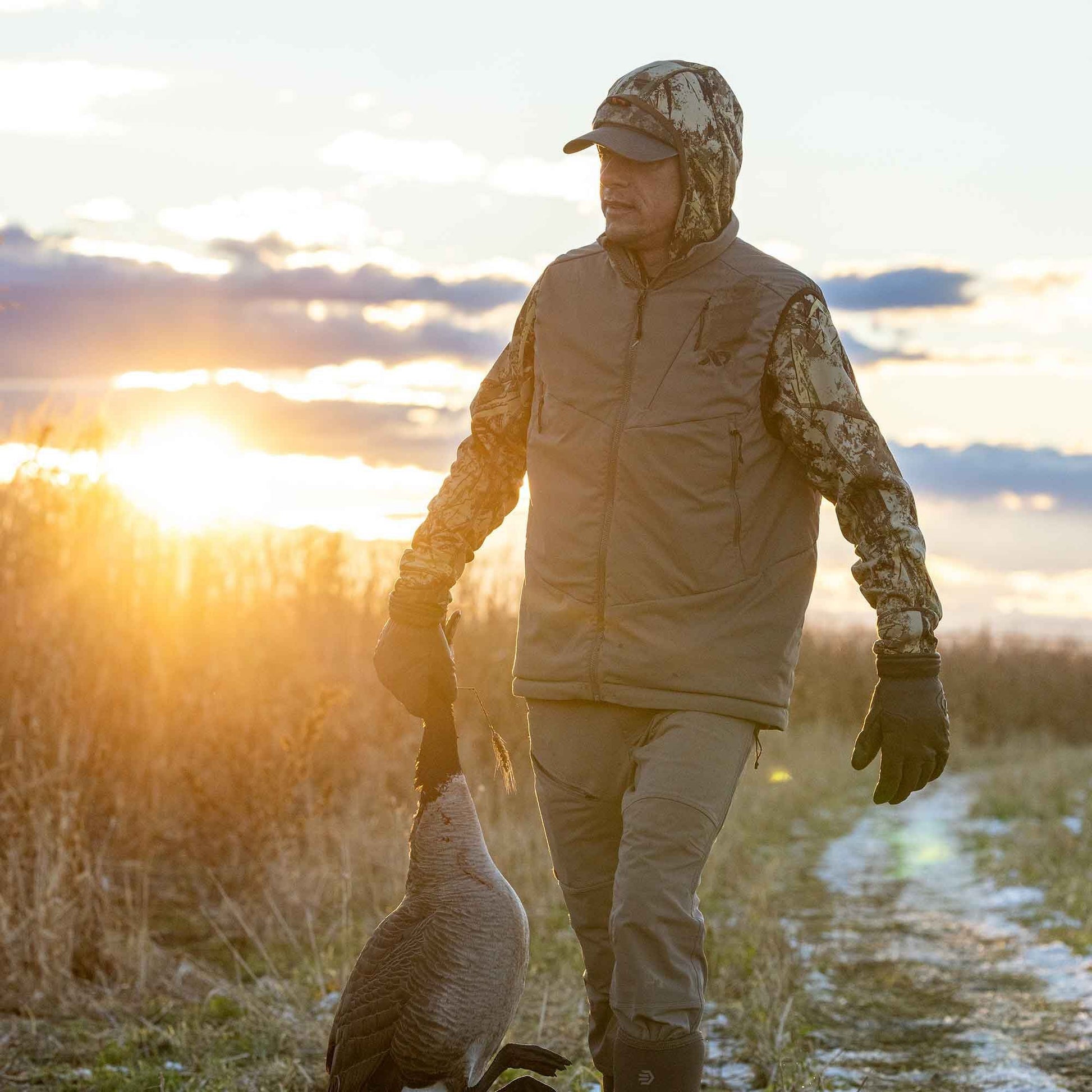 The Primer Vest is insulated with 80gsm of PrimaLoft® Gold synthetic insulation and features a windproof membrane to keep hunters warm all season long. When the weather gets really wet and cold, this vest becomes the warmest, most comfortable midlayer in your bag as it is designed to integrate with all our waterproof outerwear jackets.