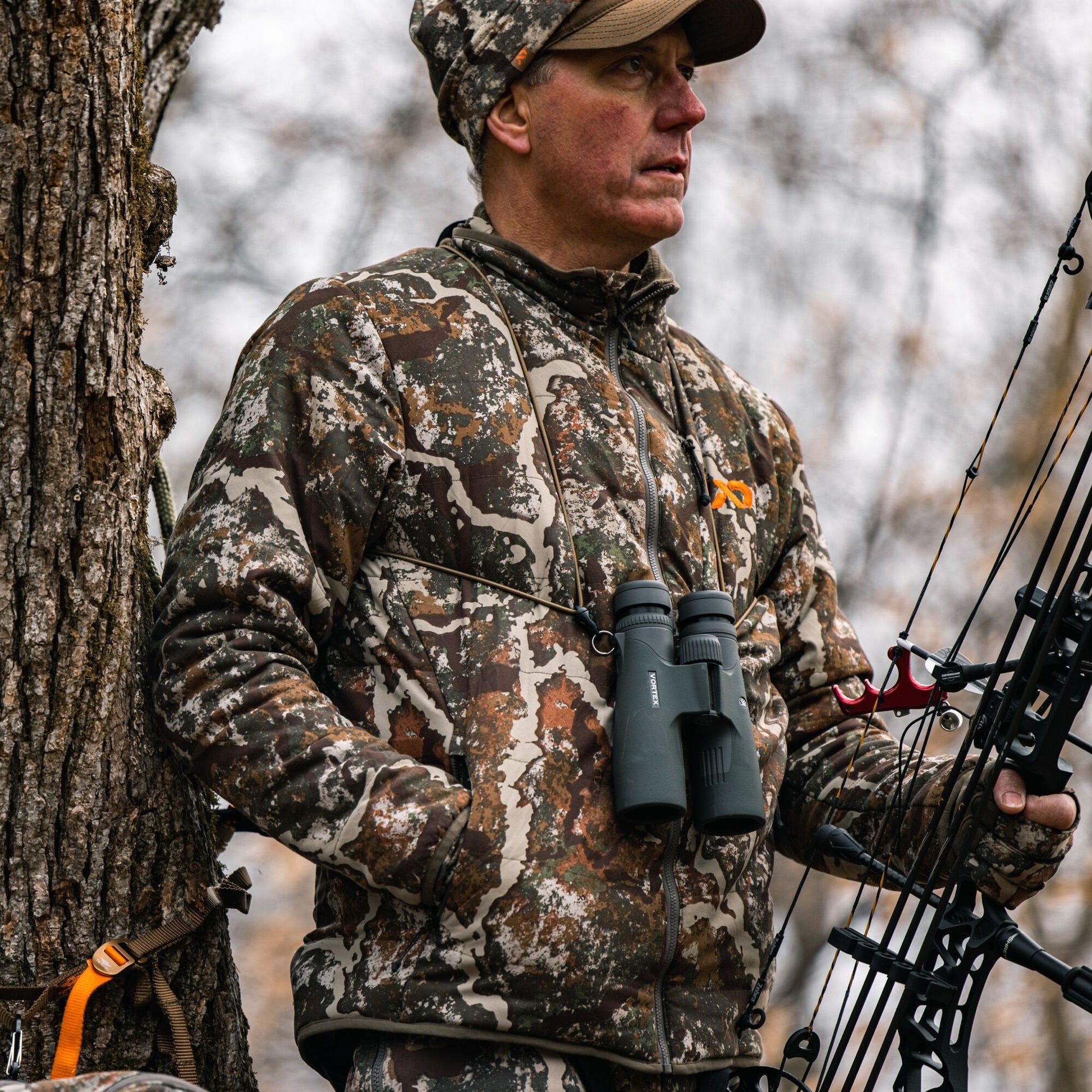 The Source Jacket is an insulated puffy specifically made for the whitetail hunter. But unlike traditional compressible jackets, this piece is both durable and silent. It is ready to shrug off brambles on the way to your stand, and it won't swish when you draw back on your target buck. The Source Jacket functions as an outer layer jacket in the first half of the season and transitions to an insulating mid-layer worn under our windproof outerwear as temperatures drop.