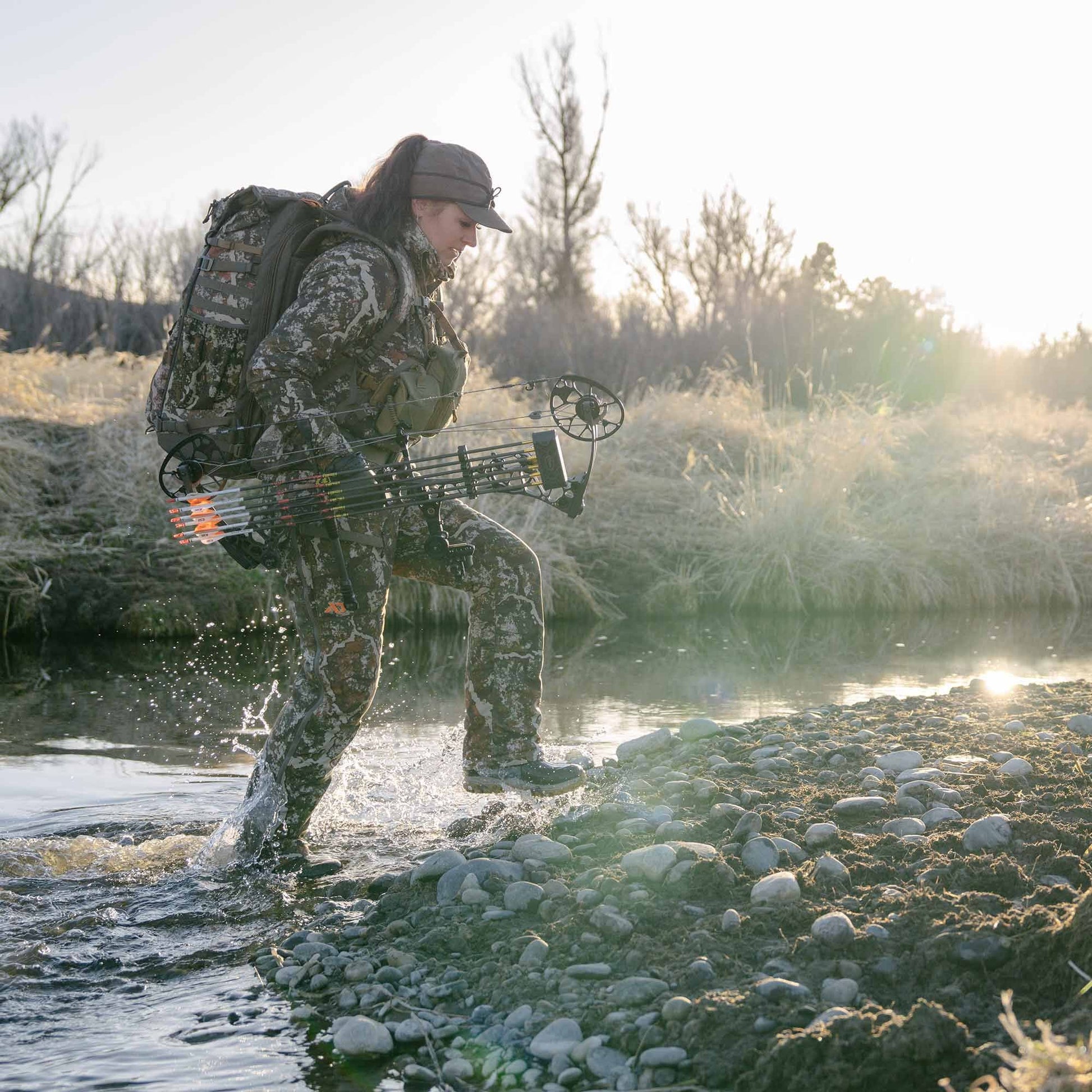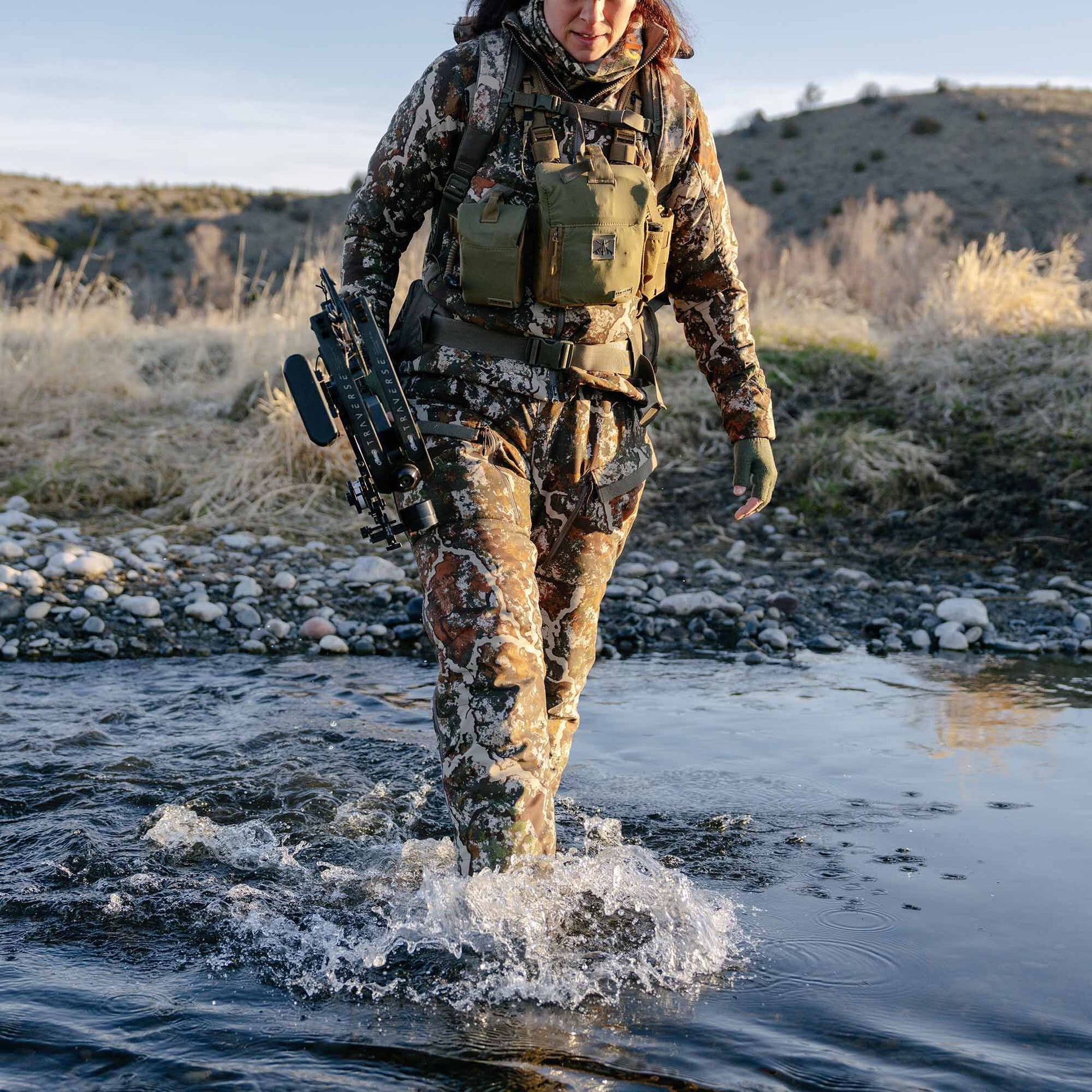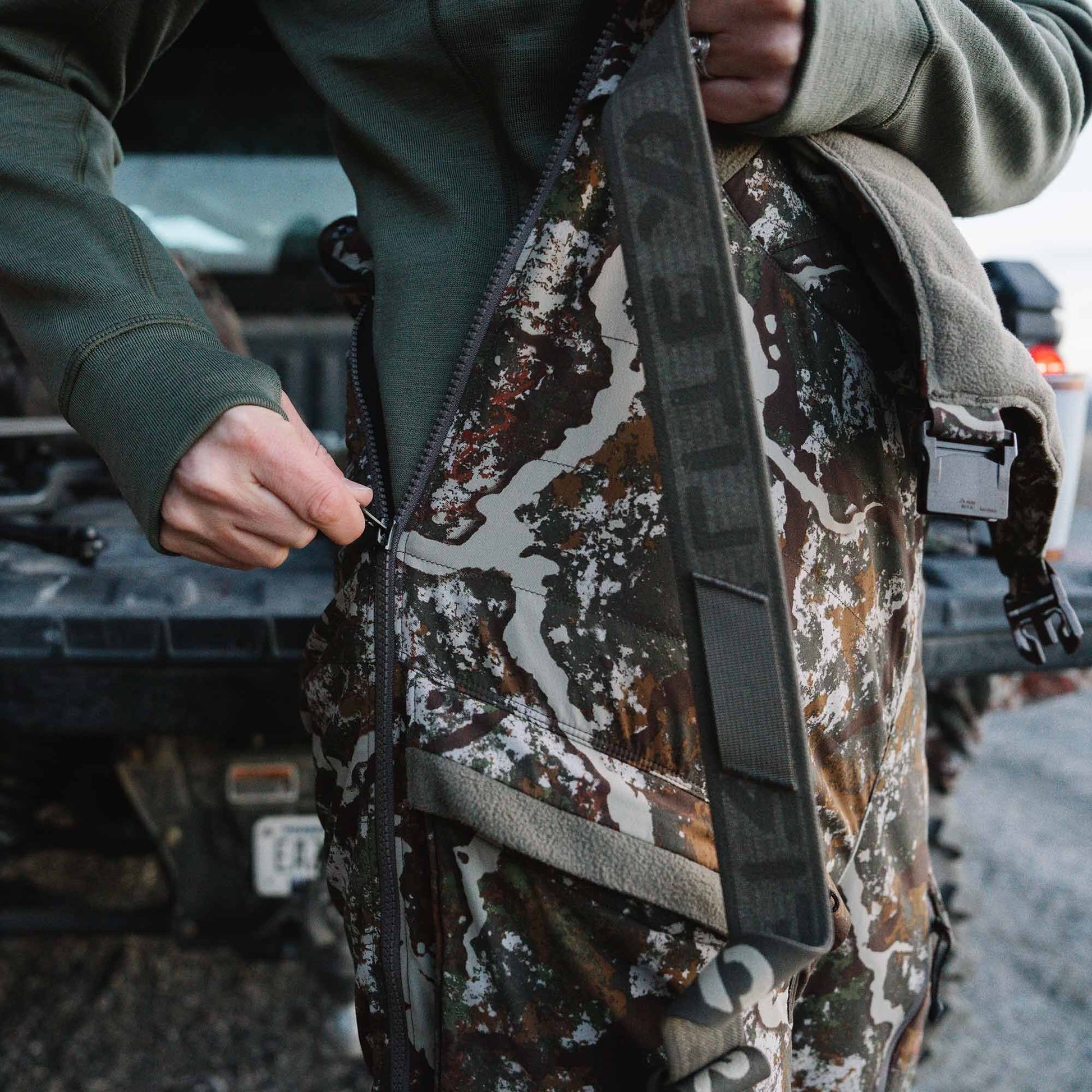 Tailored for mid to late season, the Core Kit brings a new level of versatility and technology for the heart of the whitetail season. With First Lite’s standard KitLinkTM pass-thru magnetic pockets, the Women's Core Bib integrates seamlessly with the Women's Core Jacket.